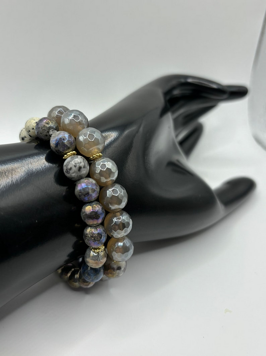 Set of 2 stunning faceted grey beads with hints of gold. This custom made piece is eye catching! Can be personalized!